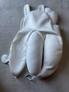 (使ってみて思ったのが、ユニースリープ枕のように枕の両足を紐で結べるようになっていないと、赤ちゃんが動いた拍子に枕から赤ちゃんがズリ落ちてしまう気がします。)